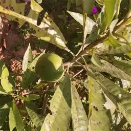 蛋黄果 Baehni),山榄科桃榄属小乔木。枝被褐色,短绒毛;叶窄椭圆形,先端渐尖;花生于叶腋,…