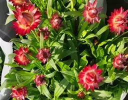 叶子表面宽厚,富肉质感且带有磨纱质感,看像石头质地;开红色小花,生于植株顶部,倒伞形密生,形状像花…