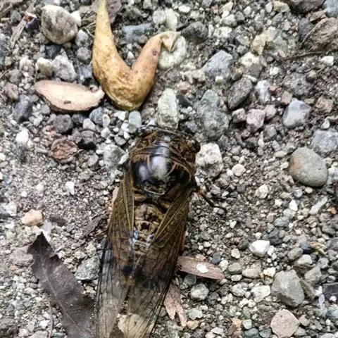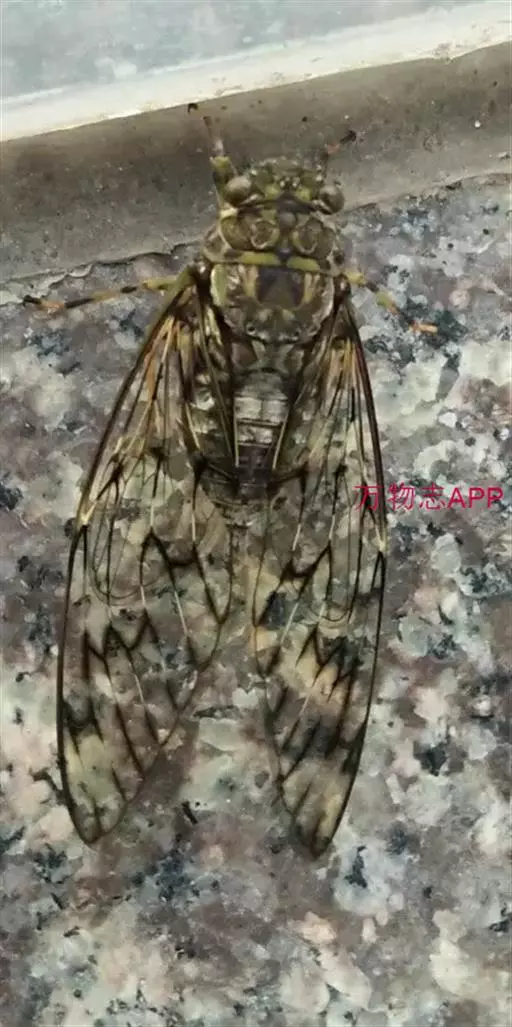 成虫出现於5至8月,生活在平地至低海拔地区树木枝干上。夜晚有趋光性,趋光个体还会鸣叫。 展开双翅的蟪蛄 简要介绍:山东地区俗称小熟了,体长35-38mm﹐吻长﹐黄绿色﹐有黑色条纹﹐翅膀有黑斑﹐雄的腹部有发音器﹐夏末自早至暮鸣声不息。