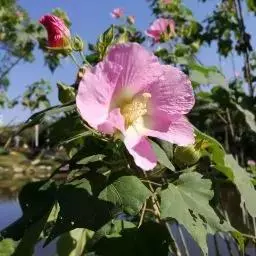 海滨木槿是锦葵科木槿属植物,落叶小乔木,株高3-5米,胸径20厘米,扁球形树冠,枝叶繁盛。…
