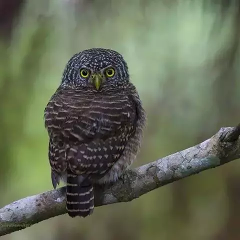 横斑腹小鸮:是鸱鸮科、小鸮属的一种鸟类。体长20厘米左右。面盘不明显,没有耳羽簇,皱领也不显著。…