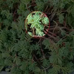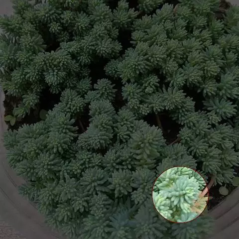 薄雪万年草别名矶小松,景天科景天属多年生草本植物,其细小的蓝绿色棒状叶片环绕生长于茎端,…