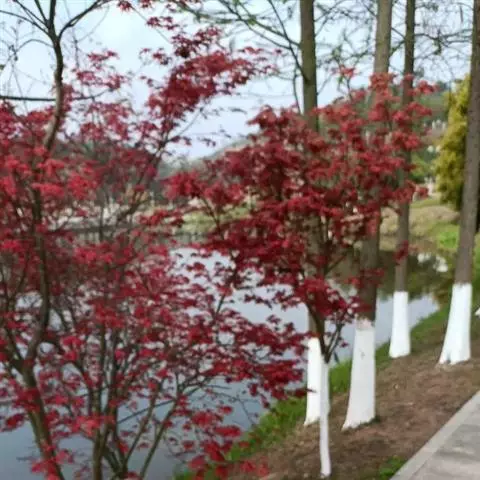 红枫,园艺种,槭树科槭属落叶小乔木,高5~8 m;树冠伞形,枝条开张,细弱。单叶对生,近圆形,薄纸质,…