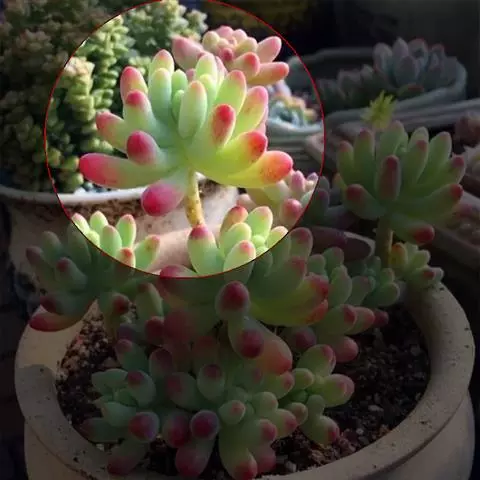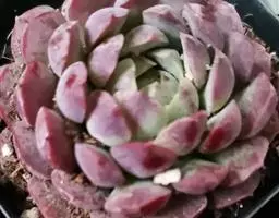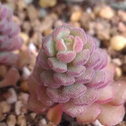 紫珍珠是景天科石莲花属的多年生肉质草本植物。植株中小型;叶片肉质,匙形,呈莲座状紧密排列;叶片粉紫色,…