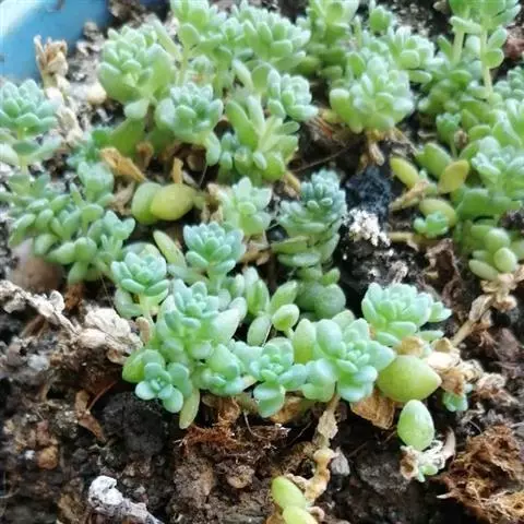 白霜,景天科景天属小型多肉植物,叶子绿色肉质会有白霜覆在表面。