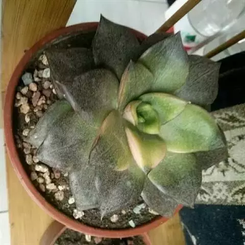 大和锦是景天科拟石莲花属的多肉植物。肉质叶排成紧密的莲座状,广卵形至散三角卵形,背面突起呈龙骨状,…