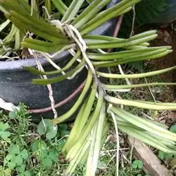 大序隔距兰 Garay):茎直立,扁圆柱形,伸长,达20余厘米,通常粗5-8毫米,被叶鞘所包,…