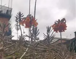 虎刺梅:别称铁海棠,是蔓生灌木植物。茎多分枝,长60-100厘米,直径5-10毫米,具纵棱,密生硬…