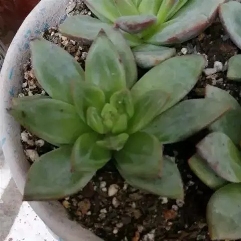 吉娃莲,景天科拟石莲花属,别名:吉娃娃,吉娃莲,植株小型,无茎的莲座叶盘非常紧凑。卵形叶较厚,带小尖,…
