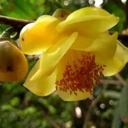 金花茶 Sealy)是山茶科山茶属植物。常绿灌木。叶革质,长圆形或披针形,基部楔形,上面深绿色,发亮,…