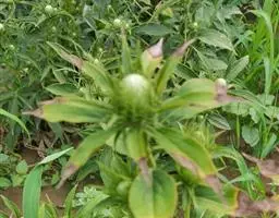 桂圆菊是菊科金钮扣属一年生草本,茎直立或斜升,高15-70 厘米,多分枝,带紫红色,有明显的纵条纹,…