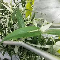 营养生长盛期(初夏):随着气温的升高(20℃-30℃)及植株生长需要,每天应浇一次水,以保持盆土湿润,每7天施以较浓腐熟人粪尿(浓度4∶6)。阴雨天施复合肥40余粒于盆四角或沿盆边缘施放薄黄豆粉。以促进长出更多新枝,经过4-5次施肥,一盆盆枝条丰满的爆仗竹就形成了,当气温在25℃-30℃时,植株尾部就会长出少量花朵。