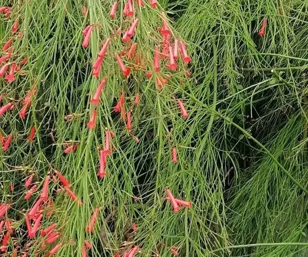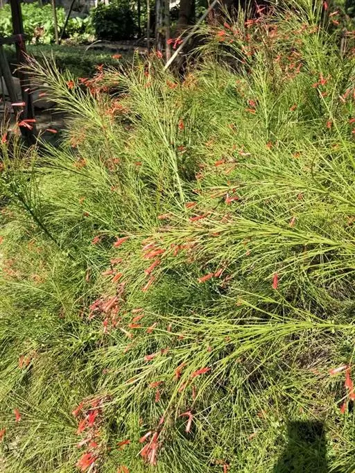 爆仗竹(学名:Russelia equisetiformis Schlecht. et Cham. )是玄参科爆仗竹属植物。直立、木贼状半灌木,高可达1米,全体无毛。茎分枝轮生,细长,具棱。叶轮生,退化为披针形的鳞片。聚伞圆锥花序狭长,总花梗长达3厘米,苞片钻形;花梗长近1厘米;花萼小,深裂过半,裂片卵状三角形,急尖,覆瓦状排列;花冠红色,具长筒,不明显唇形;雄蕊4枚,内藏,退化雄蕊极小,位于花冠筒基部的后方。蒴果球形,室间开裂。