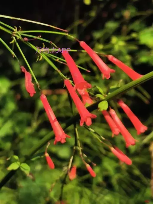 聚伞圆锥花序狭长,小聚伞花序有花1-3朵,总花梗长达3厘米,苞片钻形;花梗长近1厘米;花萼小,长仅2-3毫米,深裂过半,裂片卵状三角形,急尖,覆瓦状排列;花冠长达2厘米,红色,具长筒,不明显唇形,上唇2裂,下唇3裂;雄蕊4枚,内藏,退化雄蕊极小,位于花冠筒基部的后方。蒴果球形,室间开裂。花期长,从5月一直到冬季,只要温度高于8℃,就可开花不断。在温暖适宜的的地方,全年有花。