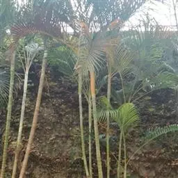 琼棕:又名陈棕,濒危种。常绿丛生灌木至小乔木状,高3至8米,茎直立、粗壮,直径4至8厘米。叶掌状深裂,…