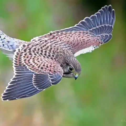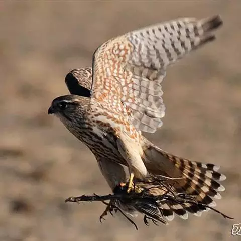 燕隼:是隼科、隼属的鸟类。体长约36厘米,体重140-340克。体形比猎隼、游隼等都小,为小型猛禽,…