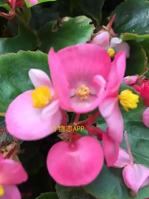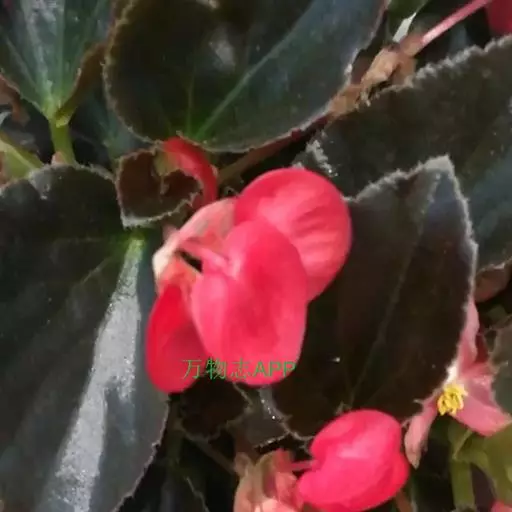 多年生常绿草本,茎直立,稍肉质,高15-30厘米。单叶互生,有光泽,卵圆至广卯圆形,长5-8厘米,宽3-6厘米,先端急尖或钝,基部稍心形而斜生,边缘有小齿和缘毛,绿色。聚伞花序腋生,具数花,花红色,淡红色或白色。蒴果具翅。花期3-12月。 四季秋海棠