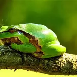 树蛙是树蛙科两栖动物的统称。树蛙体中等或大,一般雄蛙吻端斜尖,雌蛙吻端高钝;舌后端缺刻深,梨骨齿发达,…