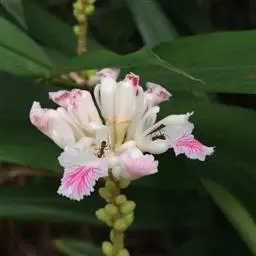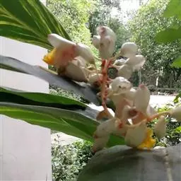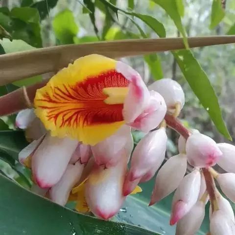密苞山姜是姜科,山姜属多年生草本植物,株高可达1.5米。叶片椭圆状披针形,顶端渐尖,并具细尾尖,基…