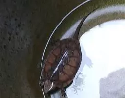地图龟 地图龟与更为普遍的滑龟及锦龟有着相似的体型。然而,与这些龟不同的是,地图龟在它的背甲中有一条很明显的嵴突 。在许多种类中,这条嵴突更像是伸向后上方的大型刺突或瘤节。这个特点使地图龟又有了另一个俗名:锯齿脊龟(Sawback turtle) 。大多数地图龟背甲后部的缘盾也向后突出,使背甲的后缘呈现为明显的锯齿状 。有些种类具有巨大的头部和颚部,这使得它们可以咬碎蜗牛和其他的软体动物。末了,最引人注目的区别在于它们皮肤和盾片上的那些富有特色的细线,这正是“地图龟”这个名字的由来,因为它们看来就像是地图上的等高线和公路行车图,这是其他龟类所难以企及的 。