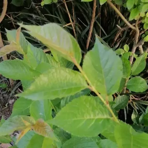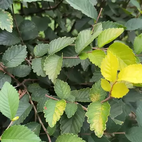 叶椭圆状卵形、长卵形、椭圆状披针形或卵状披针形,长2-8厘米,宽1.2-3.5厘米,先端渐尖或长渐尖,基部偏斜或近对称,一侧楔形至圆,另一侧圆至半心脏形,叶面平滑无毛,叶背幼时有短柔毛,后变无毛或部分脉腋有簇生毛,边缘具重锯齿或单锯齿,侧脉每边9-16条,叶柄长4-10毫米,通常仅上面有短柔毛。
