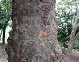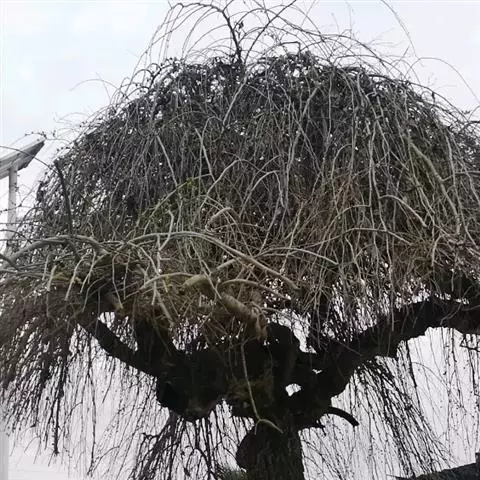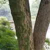 树皮暗灰色,粗糙,不规则纵裂。幼树枝条直立,且被白色毛;老树枝条先端下垂,有时木栓质发达成为瘤状。…