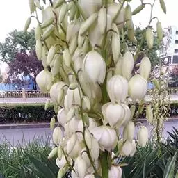 丝兰是天门冬科丝兰属植物。茎短或无茎;圆锥花序烛台状,花朵杯形,下垂,白色;叶基部呈剑形放射状,…
