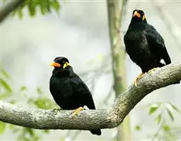 金冠树八哥为椋鸟科树八哥属的鸟类。体长约23厘米,闪辉黑色。特征为具翼斑及颏黄色,脸颊裸露皮肤粉黄色。…