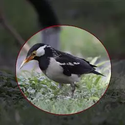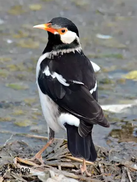 斑椋鸟:是中等体型的黑白色椋鸟,体长24厘米。头顶、头侧、翼斑、腰及腹部白色,喉、胸及上体余部黑色,…