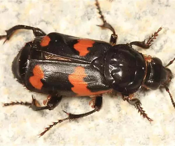 埋葬虫,又叫葬甲、锤甲虫(Nicrophorus americanus)。属于昆虫中最大的一个目——鞘翅目,埋葬甲科。该科昆虫全世界大约有175种。这是一种具有“奉献精神”的腐肉类甲虫,这不仅体现在它们的伙食上都是动物的尸体,还有它们那种在埋下的尸体旁亲手抚育自己的子女长大的社会习俗。