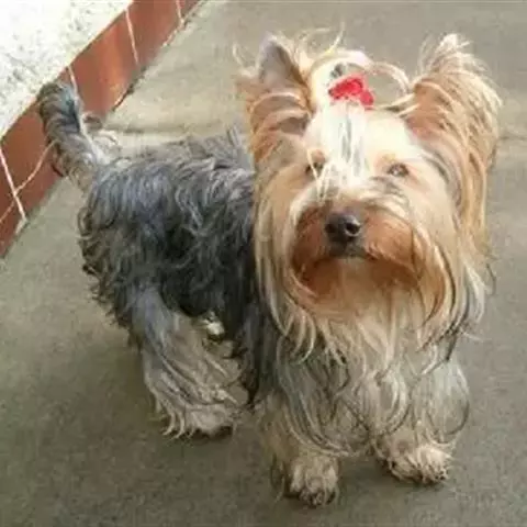 澳洲丝毛梗(Australian Silky Terrier ),又名丝毛梗(Silky Terrier),悉尼丝毛梗(Sydney Silky)。身高23厘米 体重4-5公斤。体态娇小轻盈,机敏活泼,拥有典型的梗犬特点。尖耳竖立,两耳间的头骨很宽 竖直的耳朵 楔形的头骨,平直的中长背部,如猫般的小脚,眼睛细小。披毛如绢丝一样从背上等长垂散下来,富有光泽,其长度达15厘米左右。一般说来,以头顶之毛浓密长披,而脸、耳之毛稍短者为好。身体上分布毛色有蓝,黄,灰,银等,头后部、身体呈银色、蓝灰色、蓝色,眼睛上部,脸颊及四肢呈亮黄色,头顶为银色等。