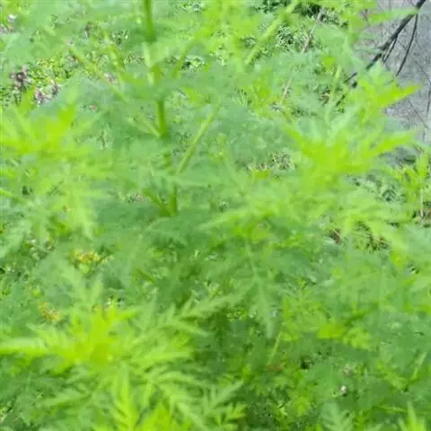 野艾蒿(Artemisia lavandulaefolia DC.)为菊科蒿属多年生草本植物,植株有香气。野艾蒿在我国分布甚广,多生于路旁、林缘、山坡、灌丛及河湖滨草地。该植物可入药有散寒、祛湿、温经、止血等作用。野艾蒿在临床上应用于胆囊炎、肝硬化、口腔炎、发热、支气管炎等疾病。