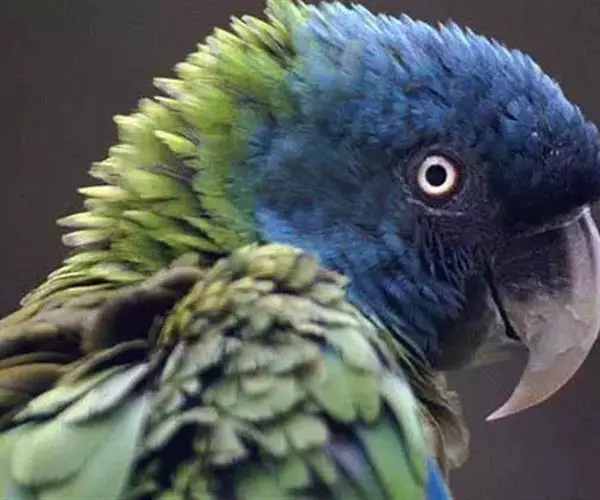蓝头金刚鹦鹉 在小型金刚鹦鹉中,最稀少、最不普及、身价最高的种类不外乎是知名度最低的神秘种类-蓝头金刚了。在20世纪90年代以前鹦鹉养殖界中人们对蓝头金刚所知极为有限,但自80年代起有合法到后来非法的走私鸟进口到欧洲后,其习性与相关信息才开始慢慢为养鸟业所熟知,所以其繁殖成果也多出现在欧洲,蓝头金刚其在野外处境相当艰难,由于他们栖地与分布小、盗捕情形严重、栖地破坏以及野外繁殖力低等种种因素,蓝头金刚的数量一直处于稀少且危险的地步,据悉野外现有总数量约在100~200只上下,,数量更是日益下降,它们与一般金刚较为不同,其面部裸面部位呈灰黑色,但幼鸟时期仍是呈现白色裸面(如下图),此一特征会随年纪增长而改变,近来华盛顿公约也再度针对数种鹦鹉种类作加强保育行动与落实的申令,而蓝头金刚则为其中一样重点鸟种,由此可见其稀有与珍贵。