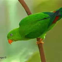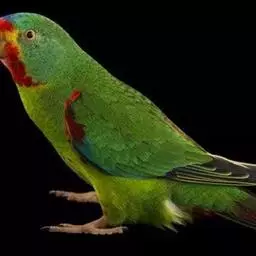 蓝头金刚鹦鹉(图2) 蓝头金刚鹦鹉身长41厘米,体重205- 295克,平均寿命约25年。 蓝头鹦鹉本类鹦鹉中最常见的品种之一,体形短胖,短方形的尾巴,头部呈现亮丽的蓝色。成鸟的头至胸部是亮丽的蓝色羽毛,耳旁有一圈黑色的羽毛,黑色为底的鸟喙,两侧有一抹红色。身体和翅膀为深浅不一的黄绿色,尾羽带有一些蓝色的光泽。脚为灰色。 幼鸟的头颈仍保留较多的绿色羽毛,随着年龄增加,才渐渐换成蓝色羽毛。公母外表无明显差异,公鸟的较圆,母鸟则较呈椭圆状。
