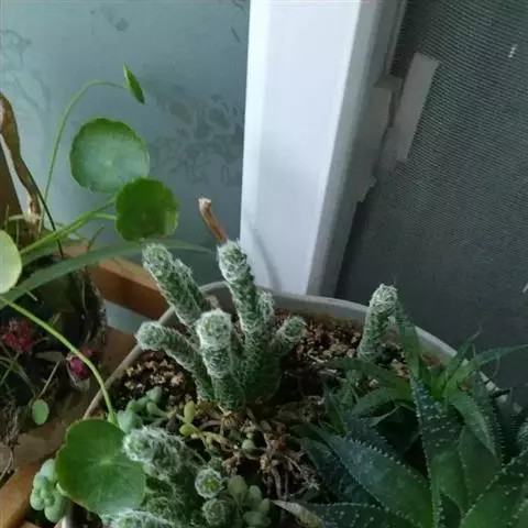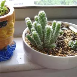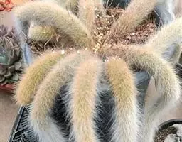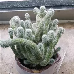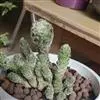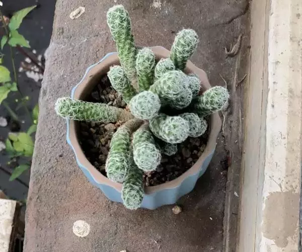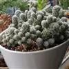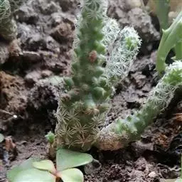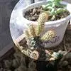 银手指 Mammillaria gracilis v. fragilis (有许多变种)手指状长柱形,周刺15-20枚,刺中通常会有突出的尖刺,开黄色花朵,花径约1cm。 银手指