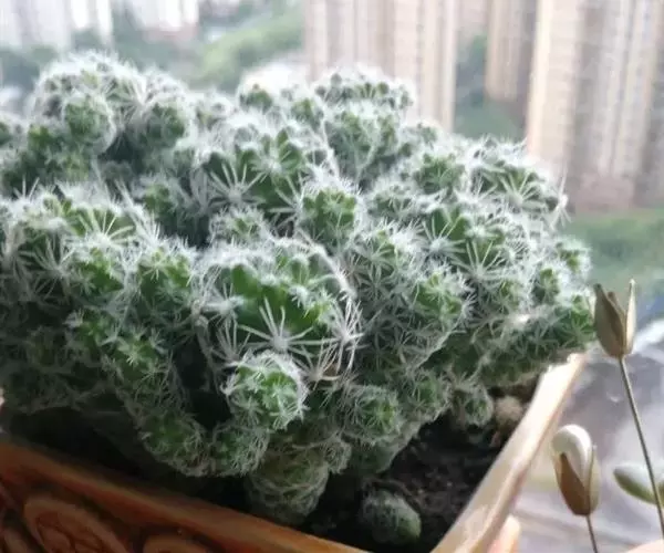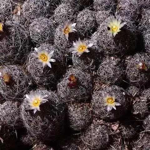 银手球,仙人掌科乳突球属,植株群生,小短圆筒形。原产墨西哥伊达尔戈州。
