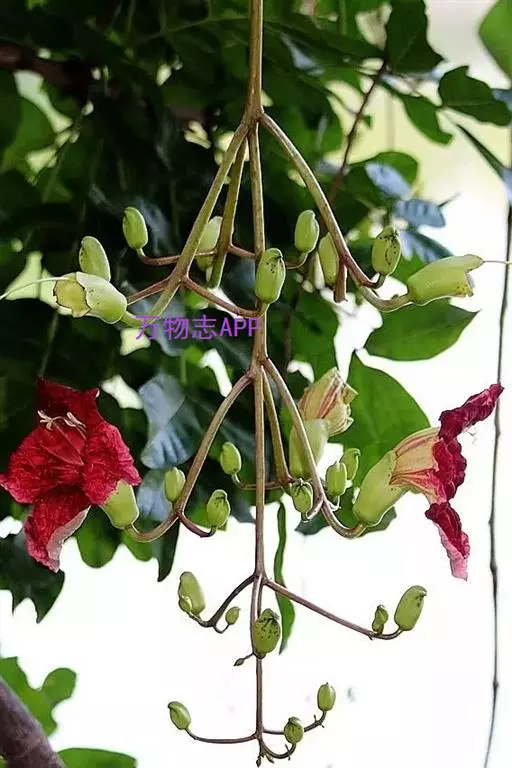 粉花凌霄 K.Schum.)是紫葳科魔盒凌霄属的落叶藤本植物。奇数羽状复叶对生,小叶全缘,…