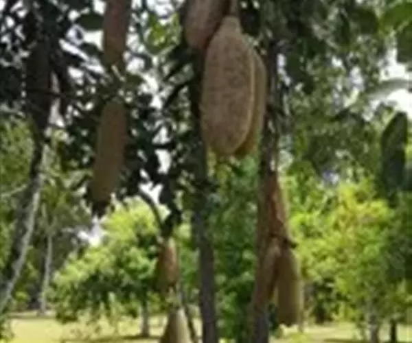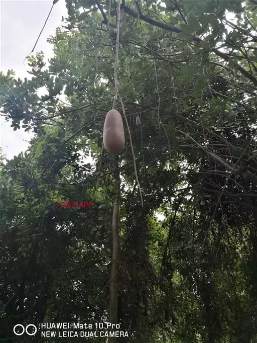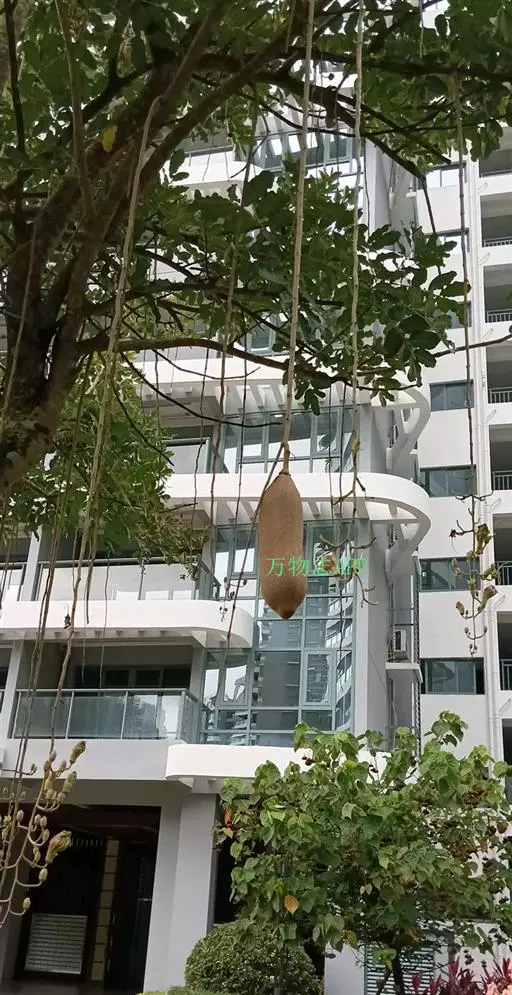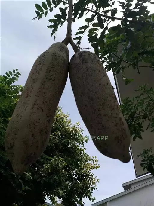乔木,高13-20米,枝下高约2米,胸径约1米 。奇数羽状复叶交互对生或轮生,叶轴长7.5-15厘米;小叶7-9枚,长圆形或倒卵形,顶端急尖,基部楔形,全缘,叶面光滑,亮绿色,背面淡绿色,被微柔毛,近革质,羽状脉明显。圆锥花序生于小枝顶端,花序轴下垂,长50-100厘米;花稀疏,6-10朵。花萼钟状,革质,长4.5-5厘米,直径约2厘米,3-5裂齿不等大,顶端渐尖。花冠桔黄色或褐红色,裂片卵圆形,上唇2片较小,下唇3片较大,开展,花冠筒外面具凸起纵肋。雄蕊4,2强,外露,花药个字形着生,药室2,纵裂。花盘环状。柱头2裂,子房1室,胚珠多数。果下垂,圆柱形,长38厘米左右,直径12-15厘米,坚硬,肥硕,不开裂,果柄长8厘米。种子多数,无翅,镶于木质的果肉内。