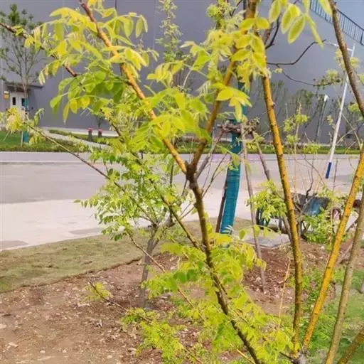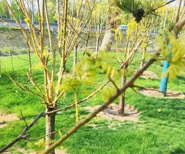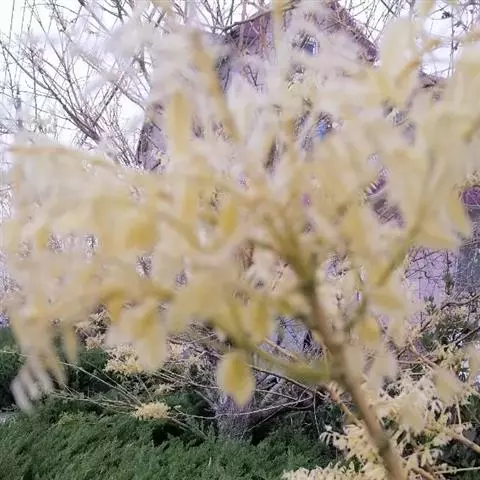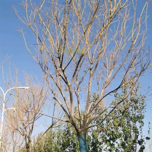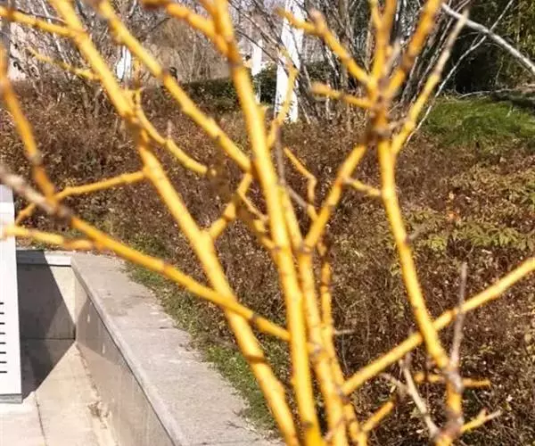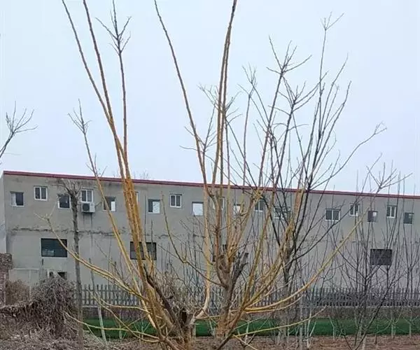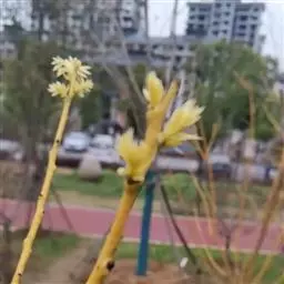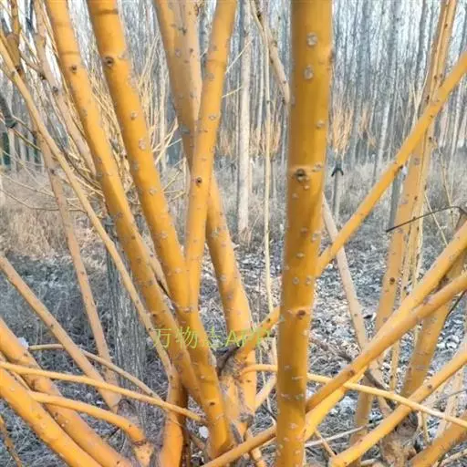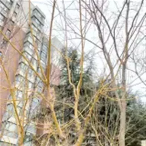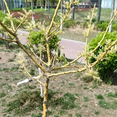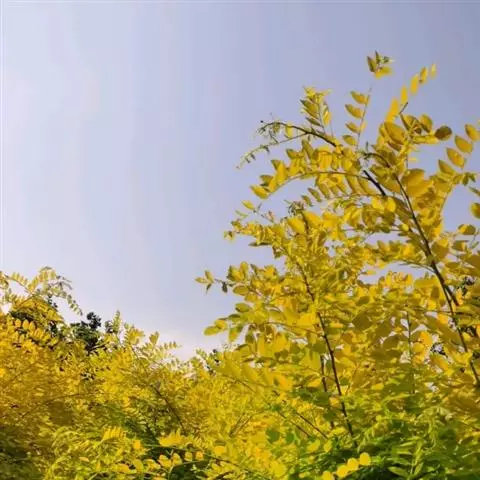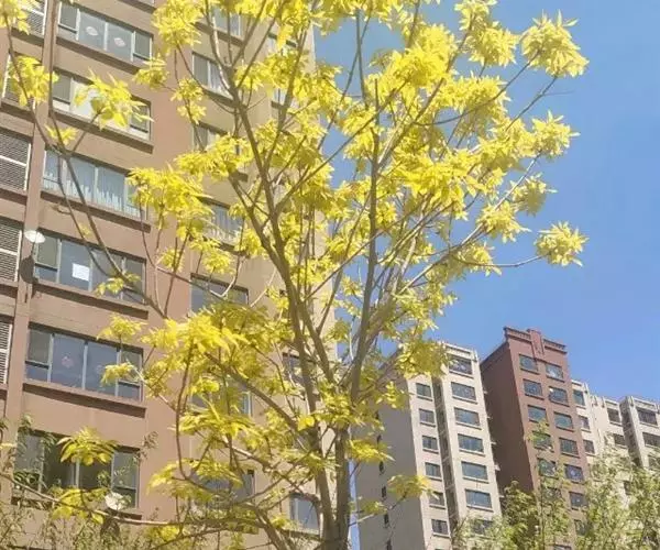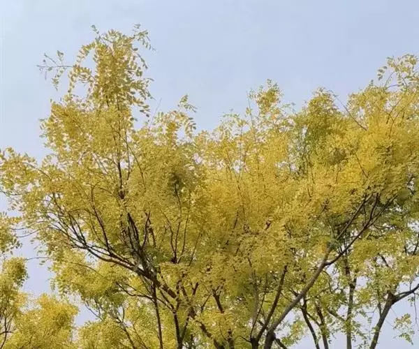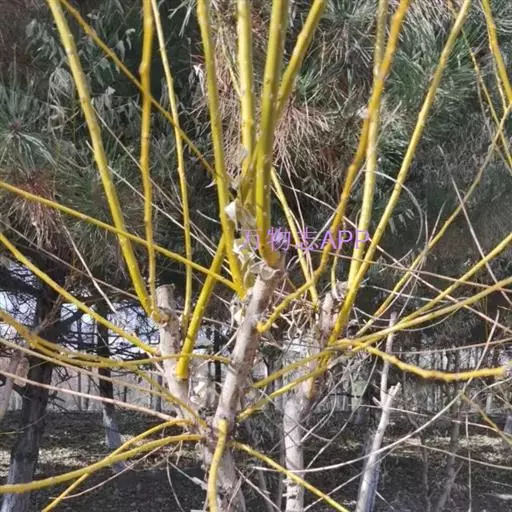 金枝槐最明显可以看到是时间是冬季,因为是落叶乔木,冬季落完叶子,只剩下枝条,枝条呈金黄色。金叶槐春夏秋三季,叶片呈金黄色,枝条为绿色。