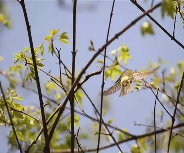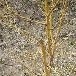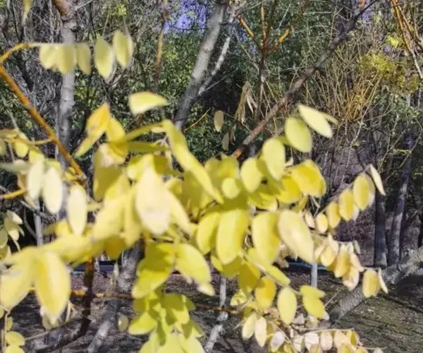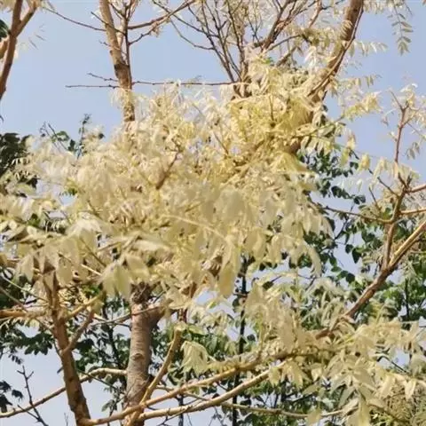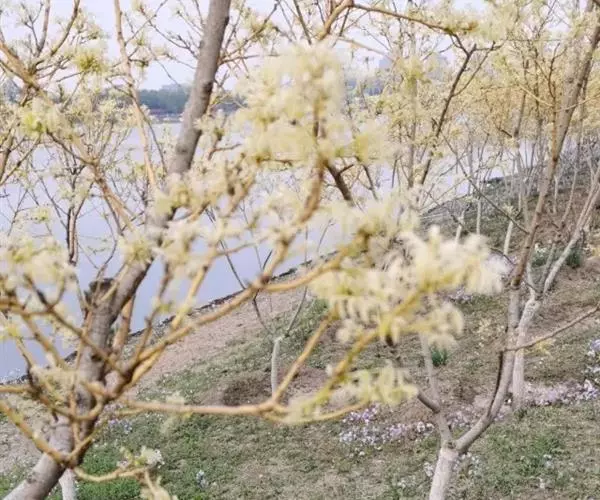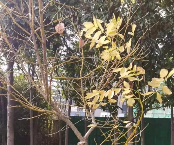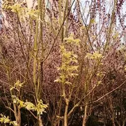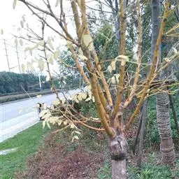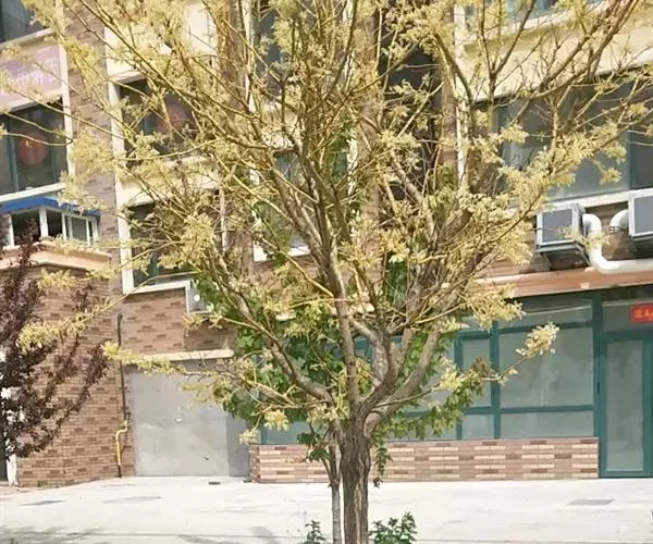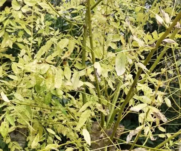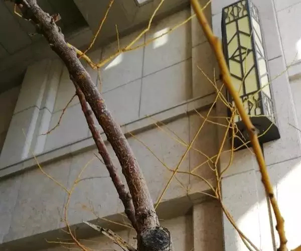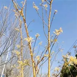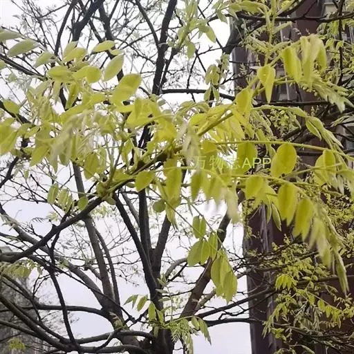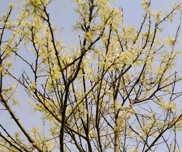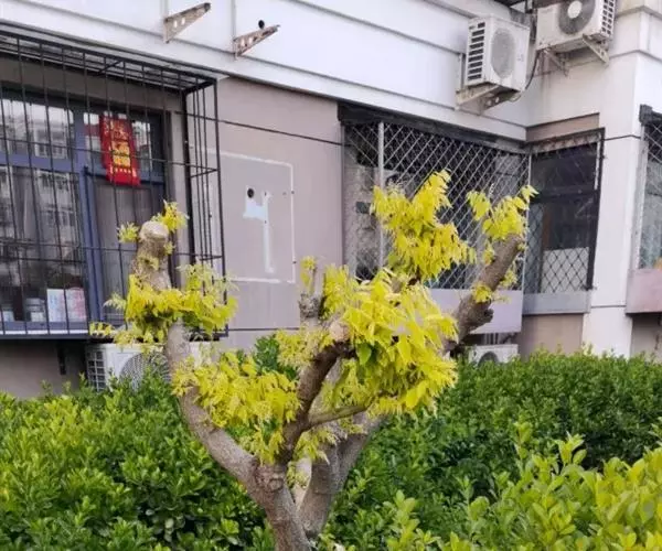 金枝槐最明显可以看到是时间是冬季,因为是落叶乔木,冬季落完叶子,只剩下枝条,枝条呈金黄色。金叶槐春夏秋三季,叶片呈金黄色,枝条为绿色。