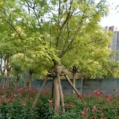 在景观配置上既可做主要树种又可做混交树种,适用孤植、丛植、群植等各种方式种植效果的景观配置。在湖滨堤岸与垂柳、重阳木、乌桕树、香樟、枫树、桃树等花木相搭配,使湖光倒影更显灿烂美观。