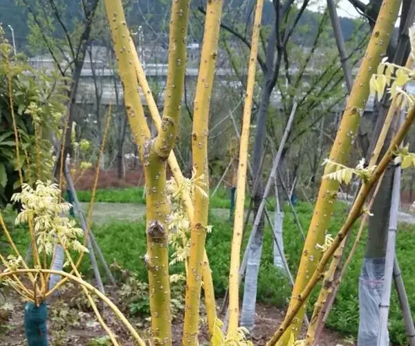 金枝槐,拉丁文名:Sophora japonica cv. Golden Stem,别名金枝国槐等,豆科槐属落叶乔木,生长在山东,河北,保定大汉绿洲园林,山西,河南,陕西等地,属于国槐的变种之一,树茎、枝为金黄色,特别是在冬季,这种金黄色更浓、更加艳丽,独具风格,颇富园林木本花卉之风采,具有很高的观赏价值。是园林绿化中常用树种之一。