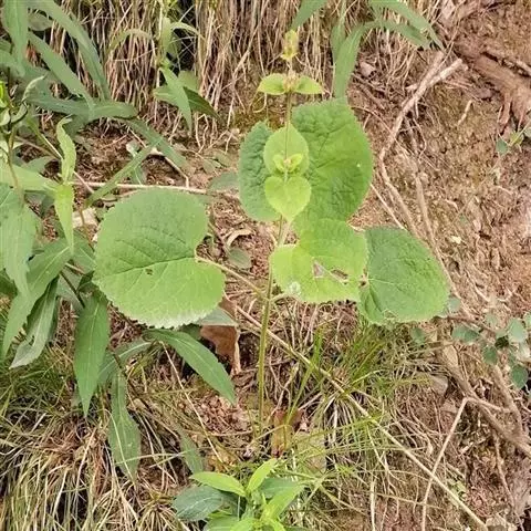 多年生草本。茎直立,高1-1.5米,四稜形,具浅槽及细条纹,被倒向短柔毛。叶卵形、菱状卵形或卵状长圆形,长(1.2)2-5.5厘米,宽(0.8)1.3-3.5厘米,先端急尖,基部宽楔形至截状楔形,边缘具粗牙齿或疏圆齿,齿端具小突尖,纸质,上面榄绿色,下面灰绿色,两面均被短柔毛及散布凹陷腺点,上面被毛较疏,侧脉4-5对,斜上升,两面略显著;叶柄长(3)5-15毫米,腹平背凸,被短柔毛。