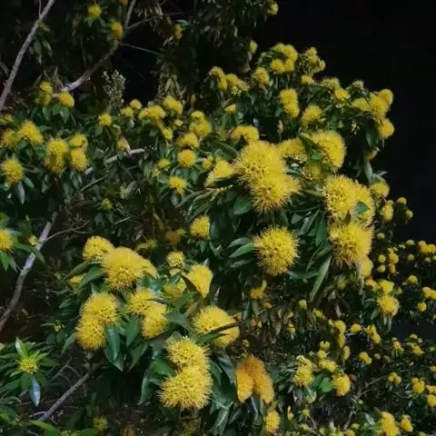 常绿乔木,高10-15米。树皮灰白而光滑;叶对生,叶片革质,卵状长椭圆形,全缘.密布油腺点,叶柄明显。叶芽顶尖,红色或粉红色;花3朵1组,圆锥花序,花瓣4片,白色而现微紫色,花萼呈筒状,顶端4裂。裂片呈三角形,鲜红色,雄蕊多数,子房下位;浆果卵圆形,红色或深紫色,内有种子1枚,呈椭圆形。花期 1-2月,果期6-7月。