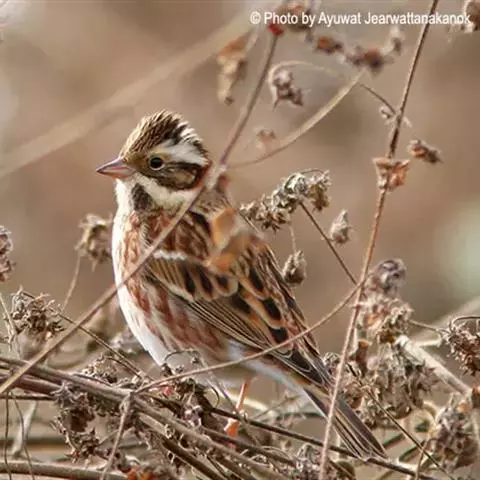 北方亚种雄鸟额、头顶、枕、后颈黑褐色具不甚显著的灰白色或灰色羽缘。上背和两肩亦为黑褐色具不明显的棕栗色羽缘,有的标本从头至下背黑褐色具橄榄褐色羽缘,腰和尾上覆羽棕色更著;尾羽黑褐色,除最外侧1-2对尾羽外,其余尾羽基部羽缘均缀有棕栗色。两翅黑褐色,外翈缘以棕白色,翅上大覆羽和中覆羽多呈栗棕色具白色端斑,飞羽黑褐色,除第一枚初级飞羽外翈无棕色渲染、内翈基部缀有淡棕色外,其余飞羽内外翈均缀有棕栗色,且越往内棕栗色所占面积越大,在两翼形成明显的棕栗色翼斑。眼先和耳羽黑褐色,眉纹白色或棕白色,颊棕白色具黑色斑点。颏、喉棕白或淡皮黄白色,喉的两侧缀有黑褐色斑点,有的标本里褐色斑点一直扩展到整个喉部;胸和两胁黑褐色或黑色、具棕白色或白色羽缘;腹白色,尾下覆羽棕褐色具白色羽端。雌鸟和雄鸟相似,但上体较少棕色,腋羽和翅下覆羽棕栗色。