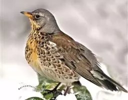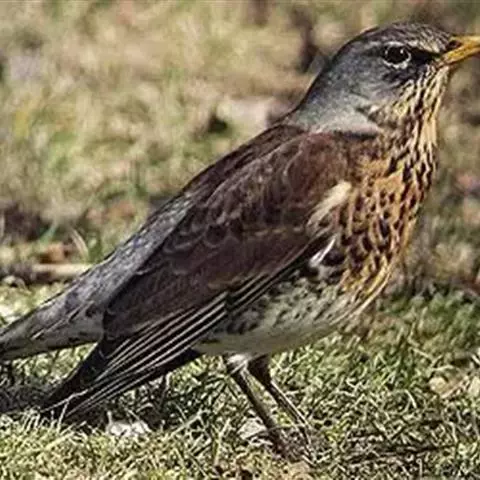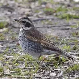 斑鸫(学名:Turdus naumanni):中型鸟类,体长20-24厘米。有2亚种,其羽色变化较大,其中北方亚种体色较暗,上体从头至尾暗橄榄褐色杂有黑色;下体白色,喉、颈侧、两胁和胸具黑色斑点,有时在胸部密集成横带;两翅和尾黑褐色,翅上覆羽和内侧飞羽具宽的棕色羽缘;眉纹白色,翅下覆羽和腋羽辉棕色。指名亚种体色较淡,上体灰褐色,眉纹淡棕红色,腰和尾上覆羽有时具栗斑或为棕红色,翅黑色,外翈羽缘棕白或棕红色,尾基部和外侧尾棕红;颏、喉、胸和两胁栗色,具白色羽缘,喉侧具黑色斑点。