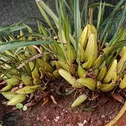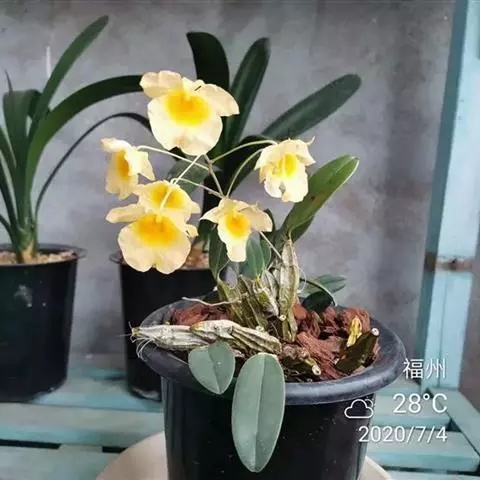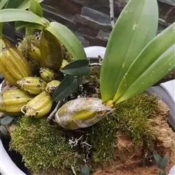 通常选用四壁多孔的塑料或陶瓷花盆,用碳根、泥炭藓、树皮块、木炭块等作盆栽材料。根据兰苗的大小,选择不同规格的花盆,但不宜用大盆栽小苗口上述栽好材料在使用前必需在清水中浸泡1天以上备用。盆底要多垫大瓦片或碎砖块,深度至盆底约1/3处,然后将兰苗放于盆中央,并在一旁插一细竹竿以固定兰苗,再填入其他栽培材料,注意根与根之间用材料隔开。