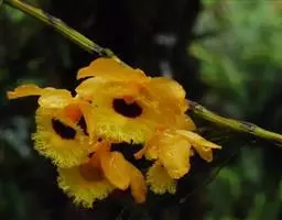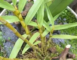 重唇石斛:茎下垂,圆柱形或有时从基部上方逐渐变粗,具少数至多数节。叶薄革质,狭长圆形或长圆状披针形。…
