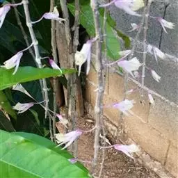 扦插繁殖可以结合花后换盆和分株时一起进行。石触兰多具有细长、带肉质的茎,茎上有许多节,节上能长芽,所以能用扦播繁殖。选择未开花且较充实的整做播条,将技条切成数段,每段具2-3个节,在伤口上涂上草木灰或70%的代森锰锌处理伤口。将茎一段一段地插入苔藓和泥炭混合的基质中,一半露在外面,放于半阴、潮湿处。插后1周不必浇水,然后经常喷雾保湿,适当遮阴。经过1-2个月,在节部有新芽长出,新芽下部长出2-3条小根形成新的植株。将新植株连向老茎一起上盆,栽培2-3年可开花。扦插时间以4-8月为好。