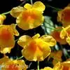 独角石斛,Dendrobium unicum,兰科石斛属植物。花瓣橙黄色,唇瓣反转似犀牛角,…